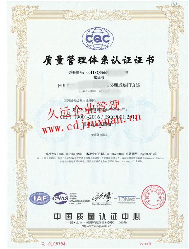 質(zhì)量管理體系認(rèn)證證書(shū)