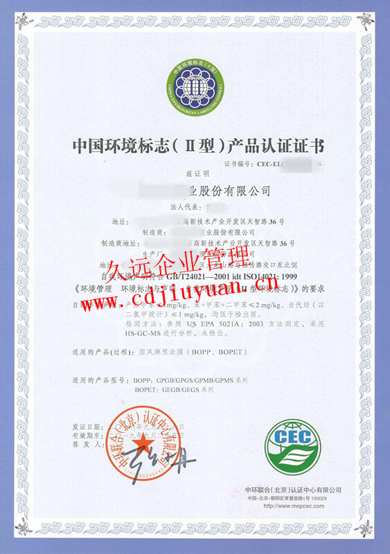 中國(guó)環(huán)保產(chǎn)品認(rèn)證證書(shū)