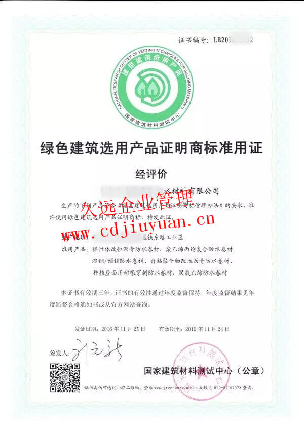 綠色建材認(rèn)證證書(shū)