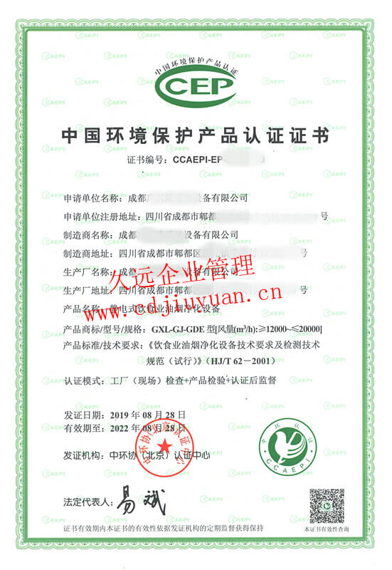 中國(guó)環(huán)境保護(hù)產(chǎn)品認(rèn)證證書(shū)